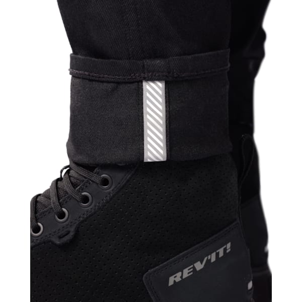 Apart from the safety elements and the motorcycle comfort, the Marzia Lady SK really resemble traditional jeans: the pockets, belt loops, zip-and-button, and the typical jeans style all remain. If you flip the bottom border of these motorcycle trousers over, you’ll see a reflective strip appear.