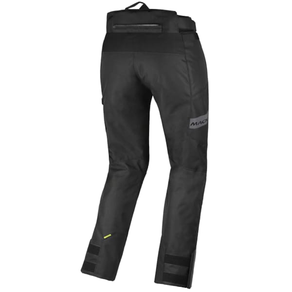 In the bottom of the trouser legs, Macna uses the Easy cuff system to secure the removable thermal lining. That zip – which is ultimately what it is – prevents your feet and motorcycle boots from having to wriggle their way through a series of loops and buttons. It gets even easier getting in, when you open the vertical zipper all the way to the knee. Thanks to Velcro at the bottom, you can customise the diameter and optimise the fit around your motorcycle boots.