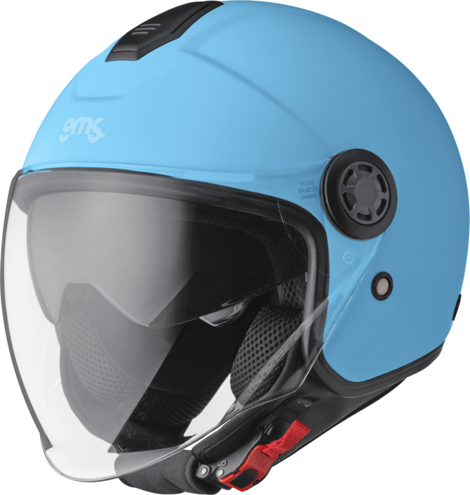 Every GMS Gelato is a polycarbonate jet helmet—which means it's lightweight and reliable. It comes with ECE 22.06 certification as standard, and a single shell size covers various helmet sizes. A sleek design was the goal, and at just 1250 grams, it’s a weight everyone can live with. Plus, the GMS Gelato helmet features a long, clear visor and an integrated sun visor—both essential when hopping on your bike between rounds of gelato. Both visors are easy to operate directly by hand.