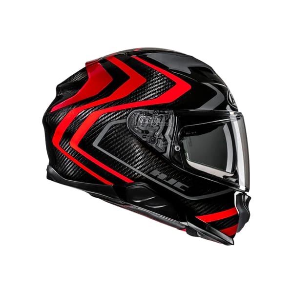 As the full name of this specific motorcycle helmet version suggests, this is the carbon version of this motorcycle helmet. HJC offers this technologically advanced and refined version to lift the (already very good) motorcycle helmet to another level. Does it show? Yes, it does: a carbon version is 100 grams lighter than the ‘regular’ ones, hence, is more comfortable and the carbon fibres absorb shocks in a different, and according to many, better way.