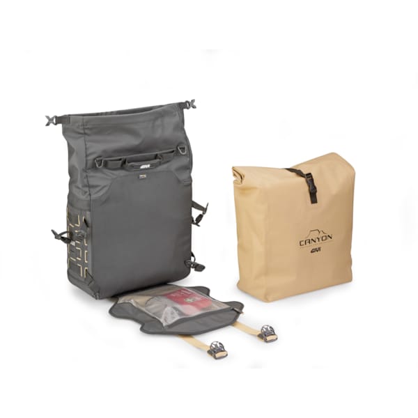 The GIVI GRT725 Canyon Monokey is a robust, flexible 30-litre side bag, specially designed for true off-road enthusiasts. Using the Monokey Cam Side mounting system, you can easily attach the motorcycle bag to PL_CAM tubular side case racks — much like you would with the aluminium side cases you might be used to.