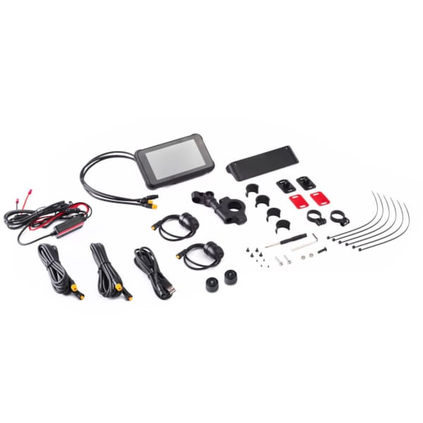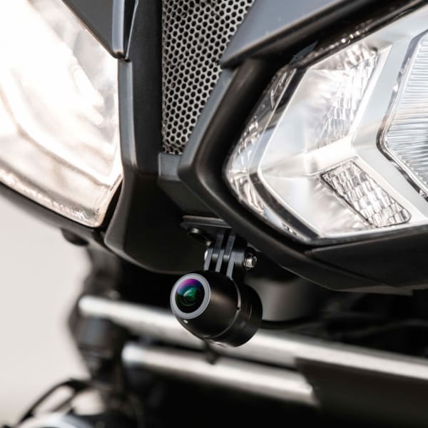Also included in the pack: two cameras with cable and two tyre pressure sensors. This means you get to monitor your motorcycle and your direct environment via your touchscreen. One camera in the front and one in the back, and you’ll control all functions through the app. Recording and registering images is optional (you’ll need an extra SD card) but the QFHD resolution and the antivibration algorithm offer great quality. The tyre pressure sensors are configurable and give a warning if a minimum value is reached.