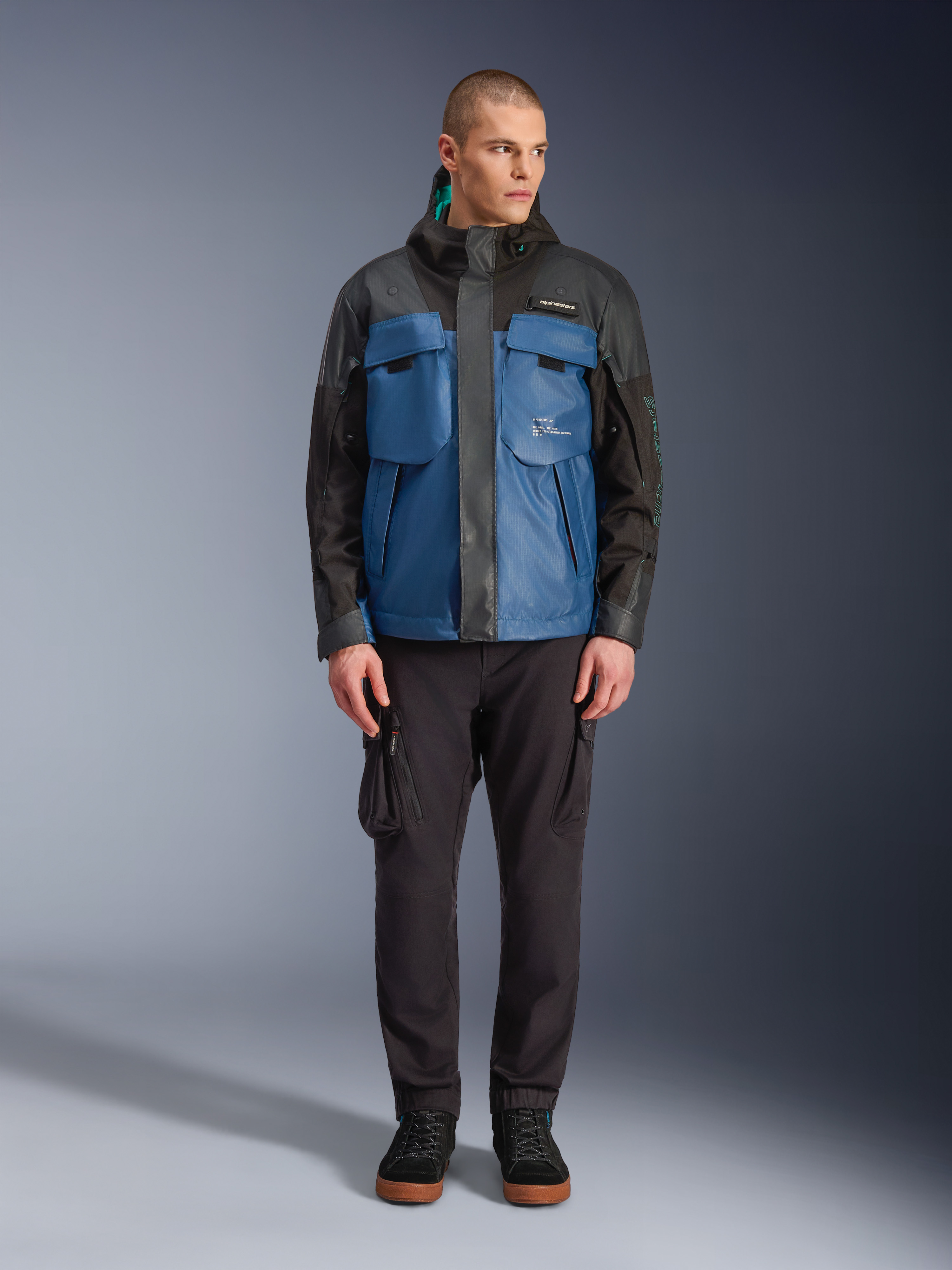 The fully taped, 100% waterproof integrated membrane delivers protection in wet weather and comfort during rainy rides. The outer shell is a coated ripstop fabric, reinforced with 300D ripstop in high-wear areas such as elbows, sleeves, hood and lower back.