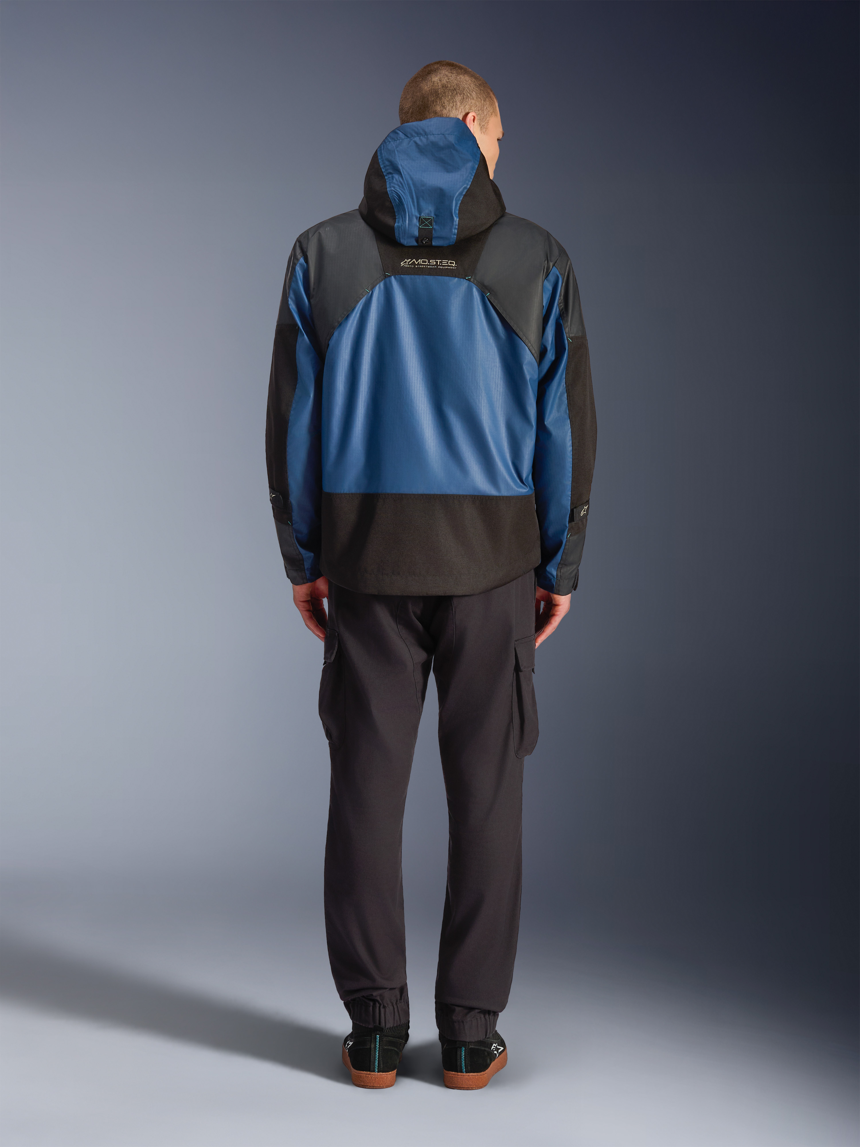A front drainage channel and metal eyelets provide fast water evacuation in heavy rain, preventing the Mospher WP from acting like a sponge. For a commuter jacket, waterproofing is not a detail but a requirement, and it also helps to be able to step indoors without turning the hallway into a pool.