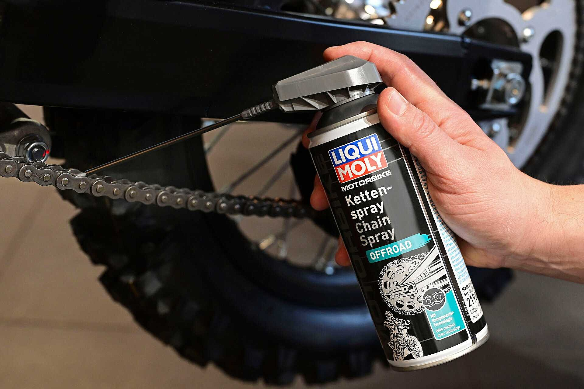 For best results, clean the motorcycle chain beforehand with Motorbike Chain and Brake Cleaner. Shake the can well and spray the chain spray evenly onto the chain. After the solvent evaporates, the lubricant reaches its final consistency and adhesion.