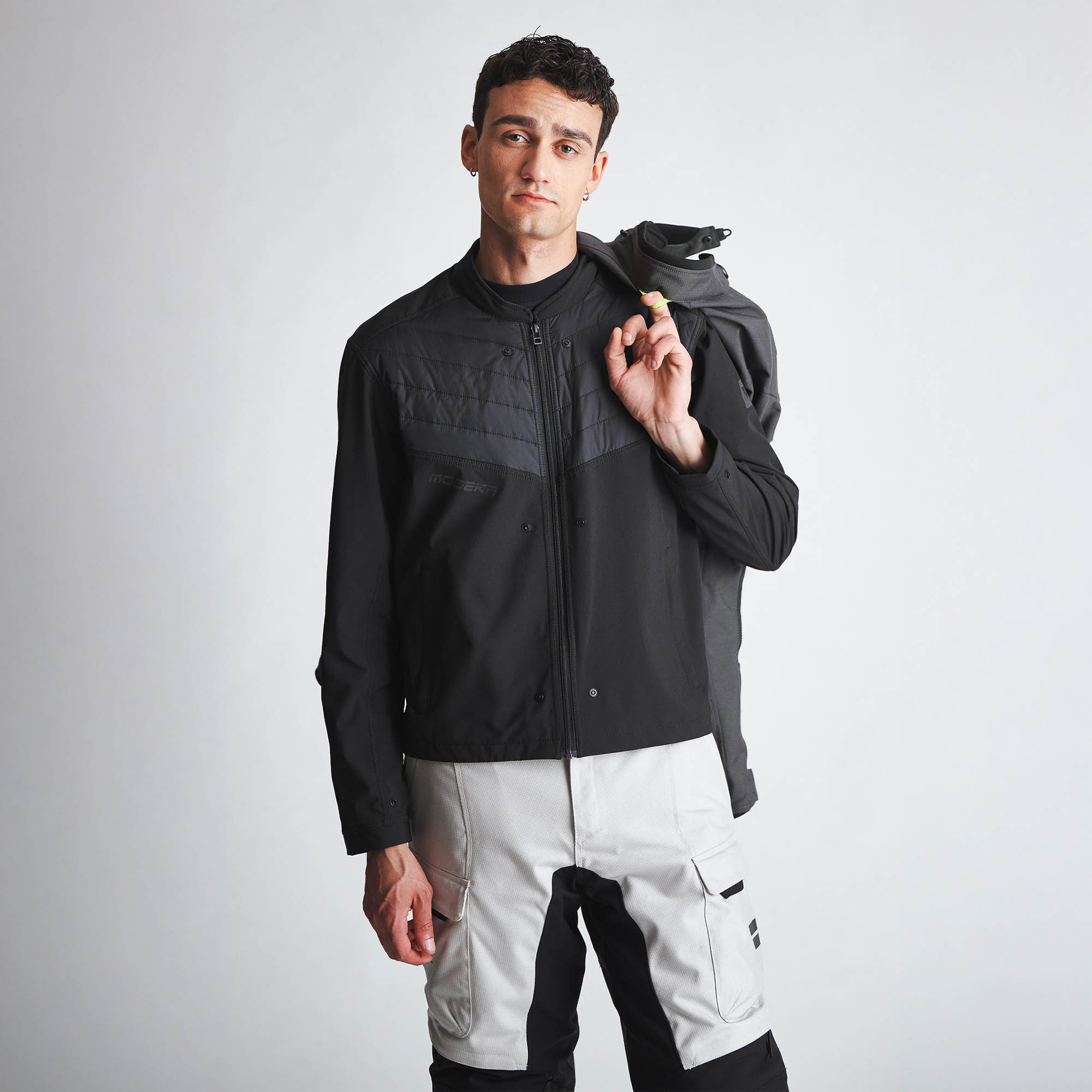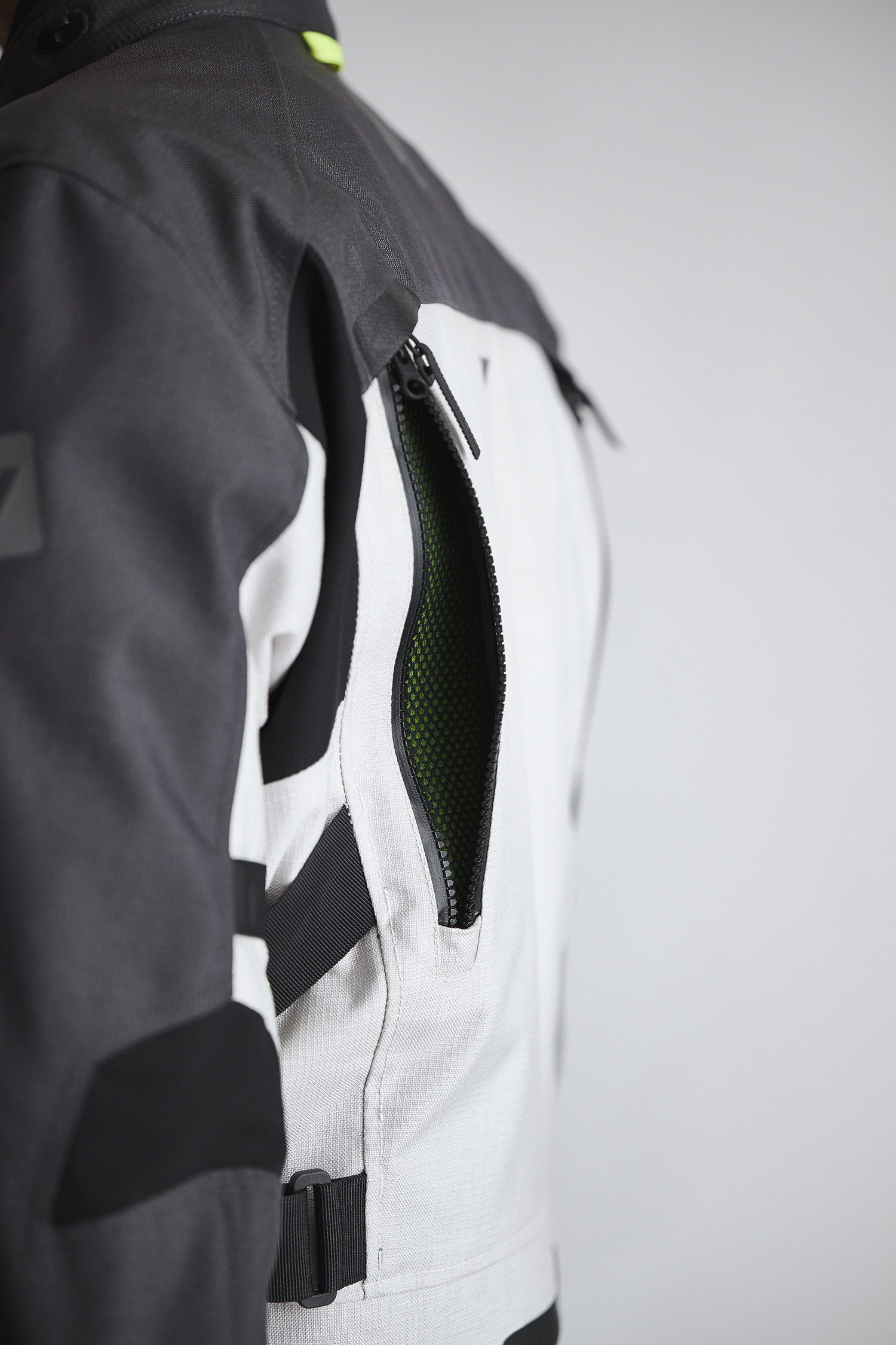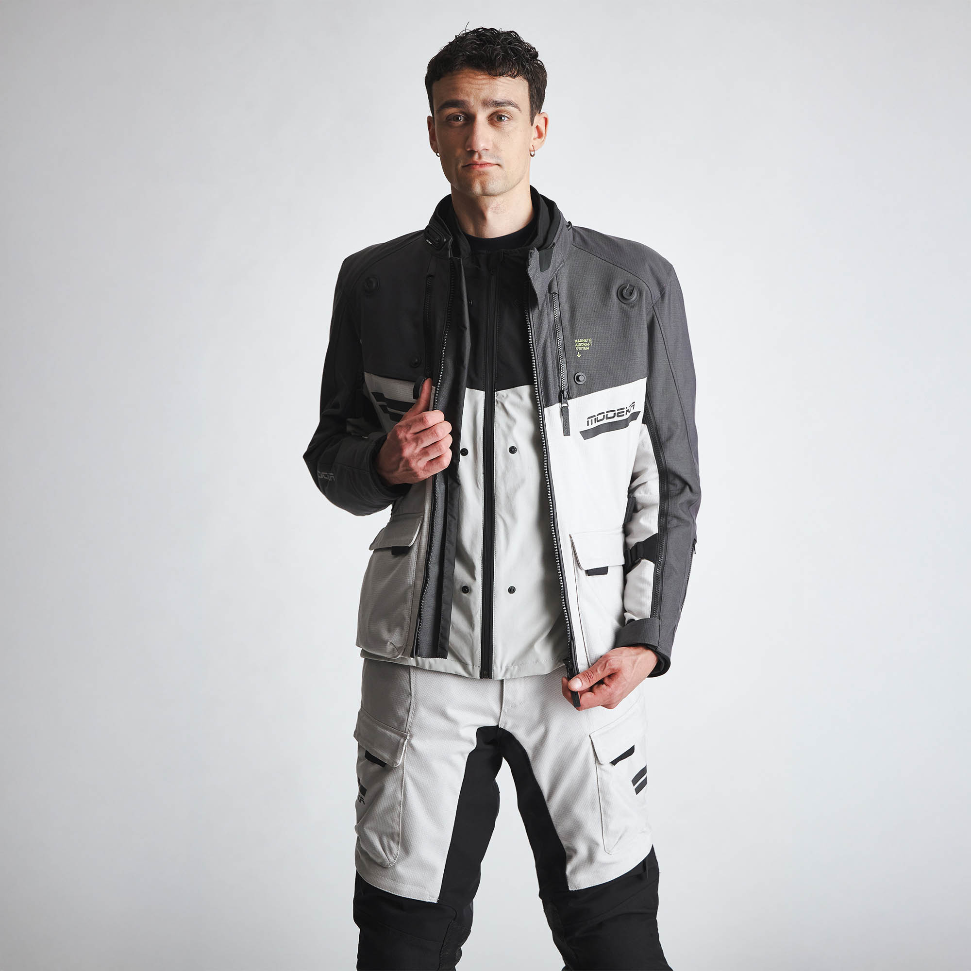The Atlaz motorcycle jacket is a modern 3‑in‑1 design. Both the waterproof and breathable HydroFlex membrane and the removable mid‑layer use the In&Out system: the waterproof membrane can be worn underneath the jacket, over it, or left out entirely. The mid‑layer, on the other hand, is designed to be worn on its own; exactly where an insulating layer is meant to sit, close to the body, but without having to haul the entire Atlaz motorcycle jacket.