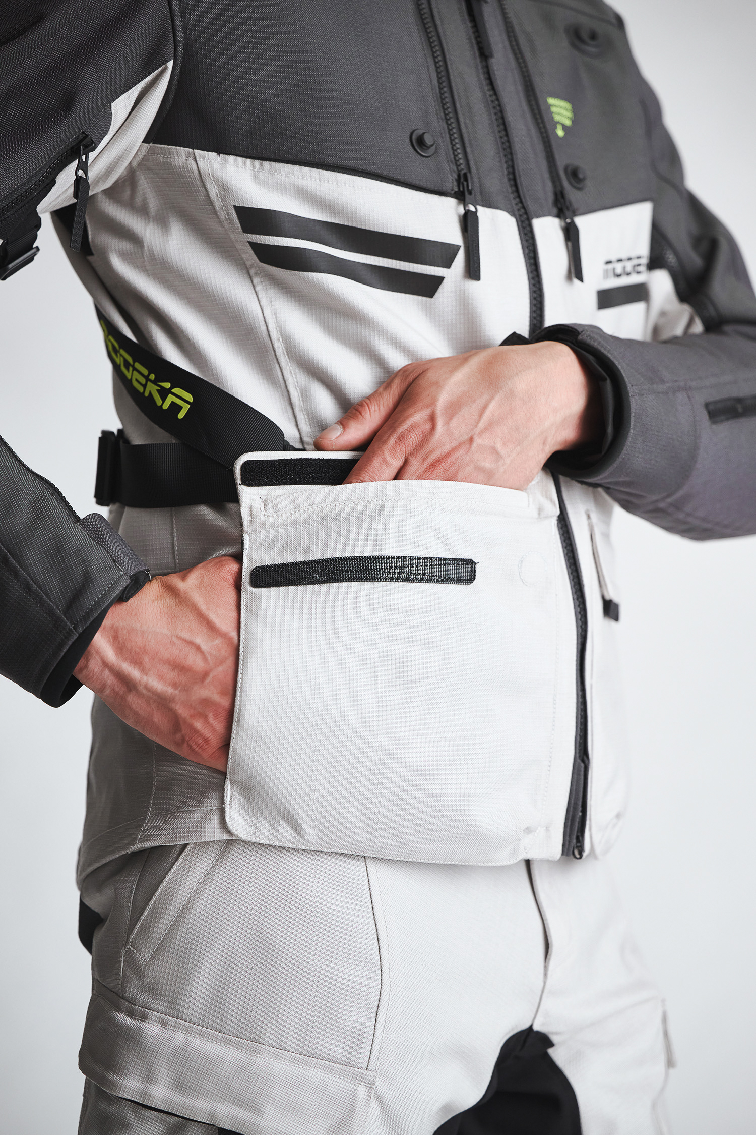 Premium YKK Aquaguard zippers support water resistance, though – as experience shows over thousands of kilometres – the claim of a ‘waterproof zipper’ is always risky.