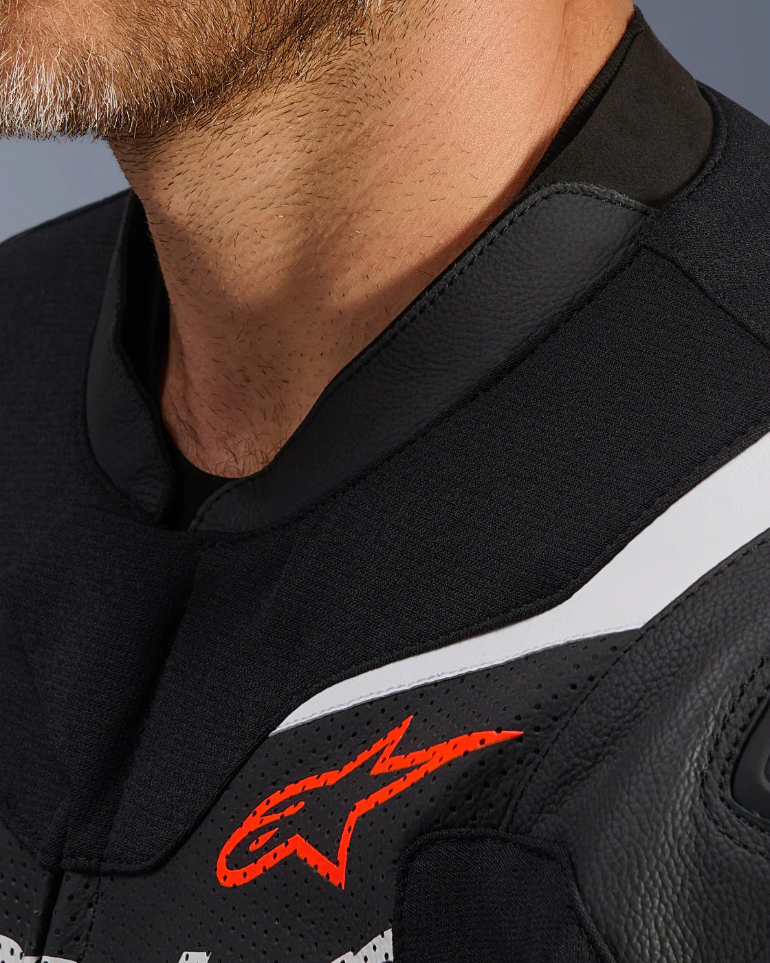 The pre-formed construction consists of soft cowhide leather with a double layer in the impact zones. Perforated panels on chest, back, arms and legs ensure a constant airflow without compromising the protective properties. The sport fit is tight without being restrictive. HRSF stretch panels (High Resistant Stretch Fabric) under the arms, on the shoulder blades, in the crotch and on the back of the legs provide freedom of movement in the riding position. Sure, you sit slightly less comfortably on the seat with it, but that's not what the GP Force V2 is for. Leather accordion panels on the lower back, shoulders and knees flex with your body as you slide from corner to corner.