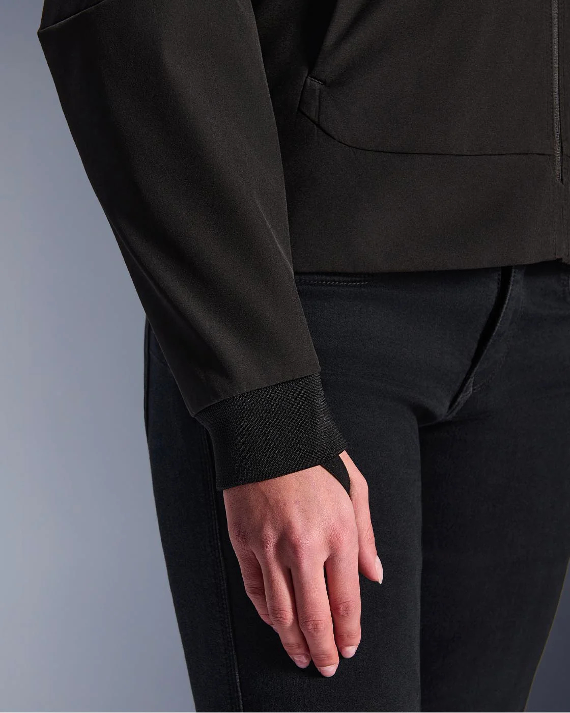 The hood is not removable, but a fastening system with a loop at the back and drawcords at the front keeps it stable while riding. No flapping and no distraction. The ribbed cuffs in stretch material close comfortably around your wrists. Two front storage pockets and a waterproof inner pocket keep things practical in terms of available space.