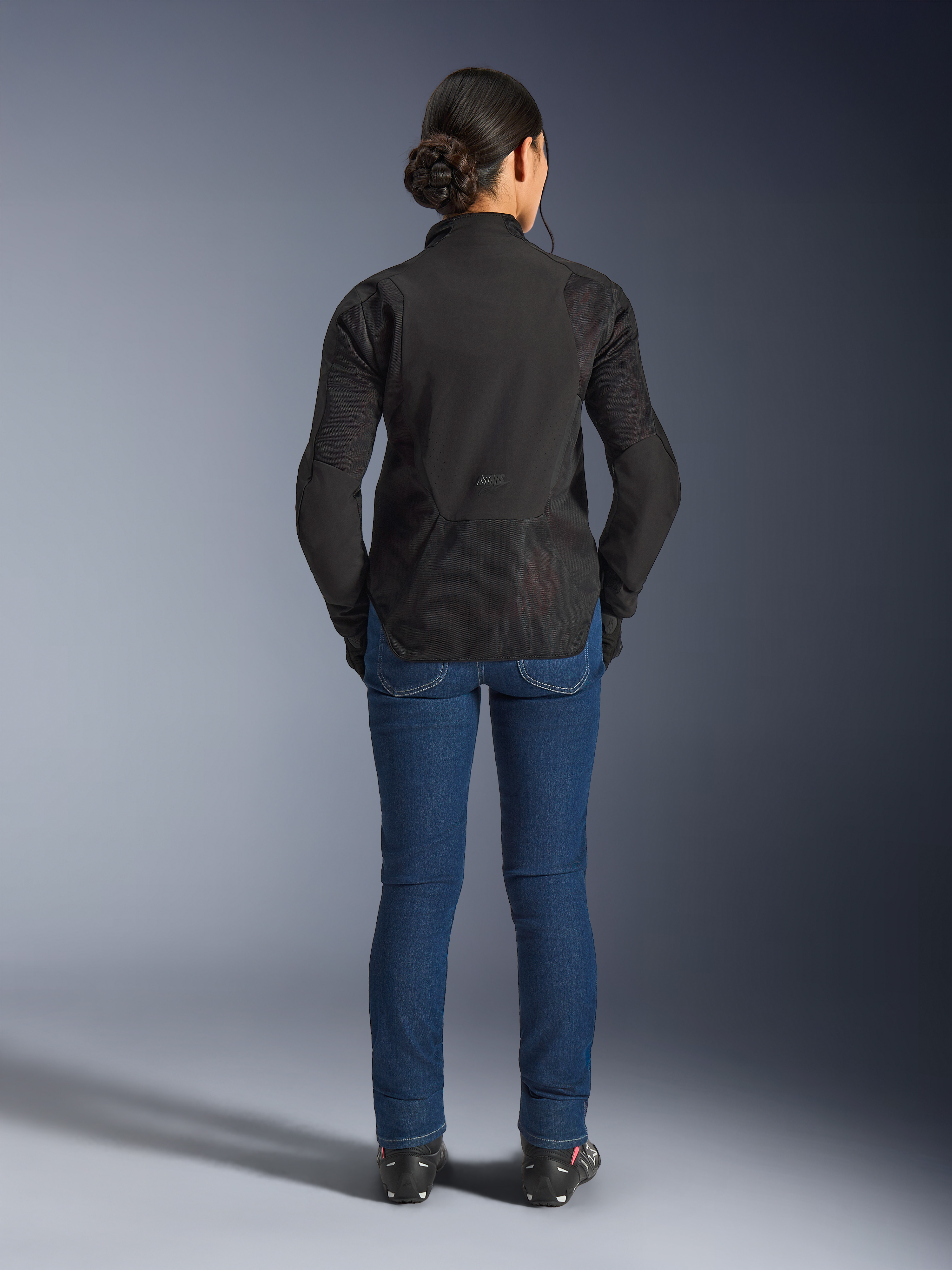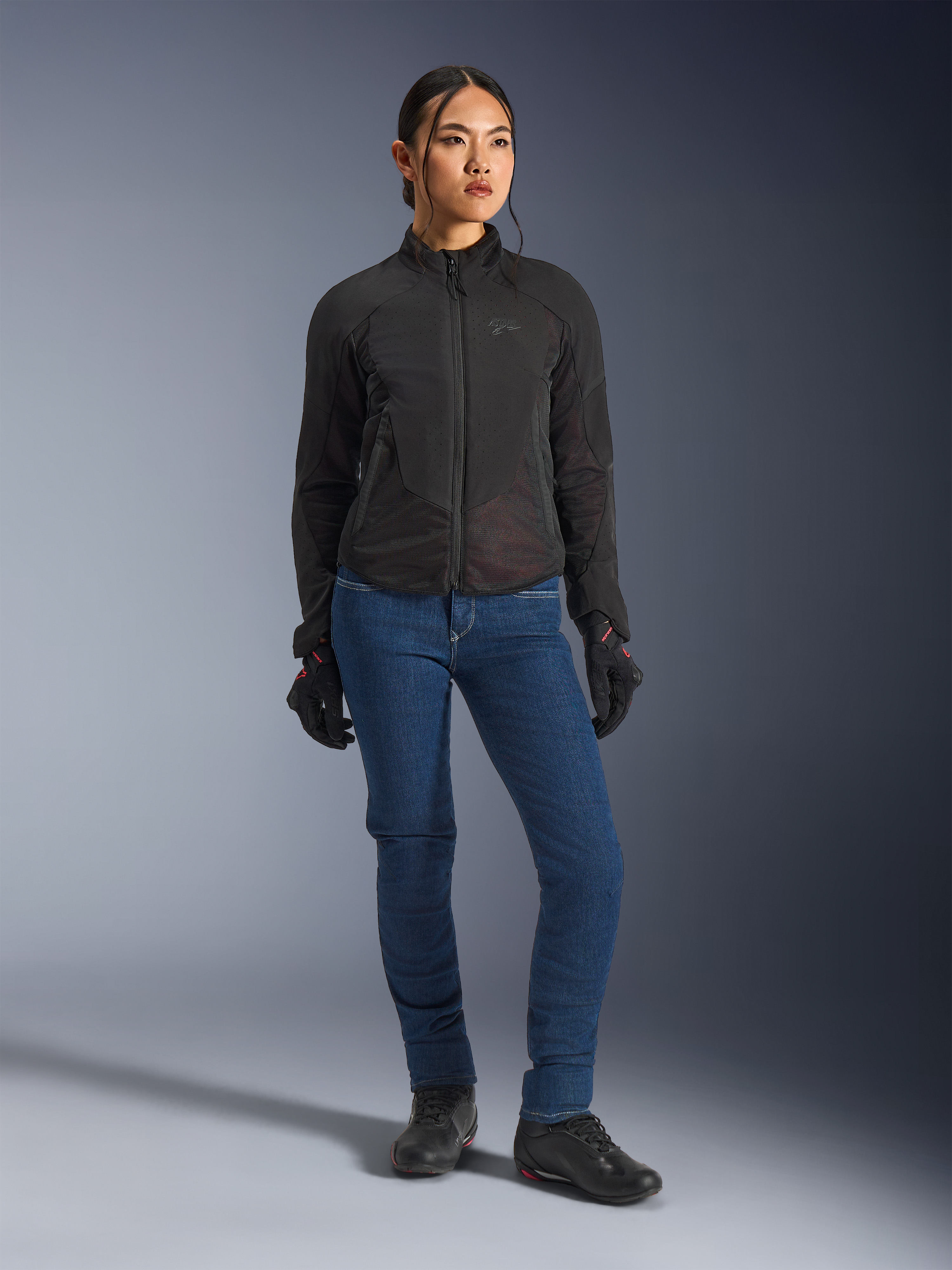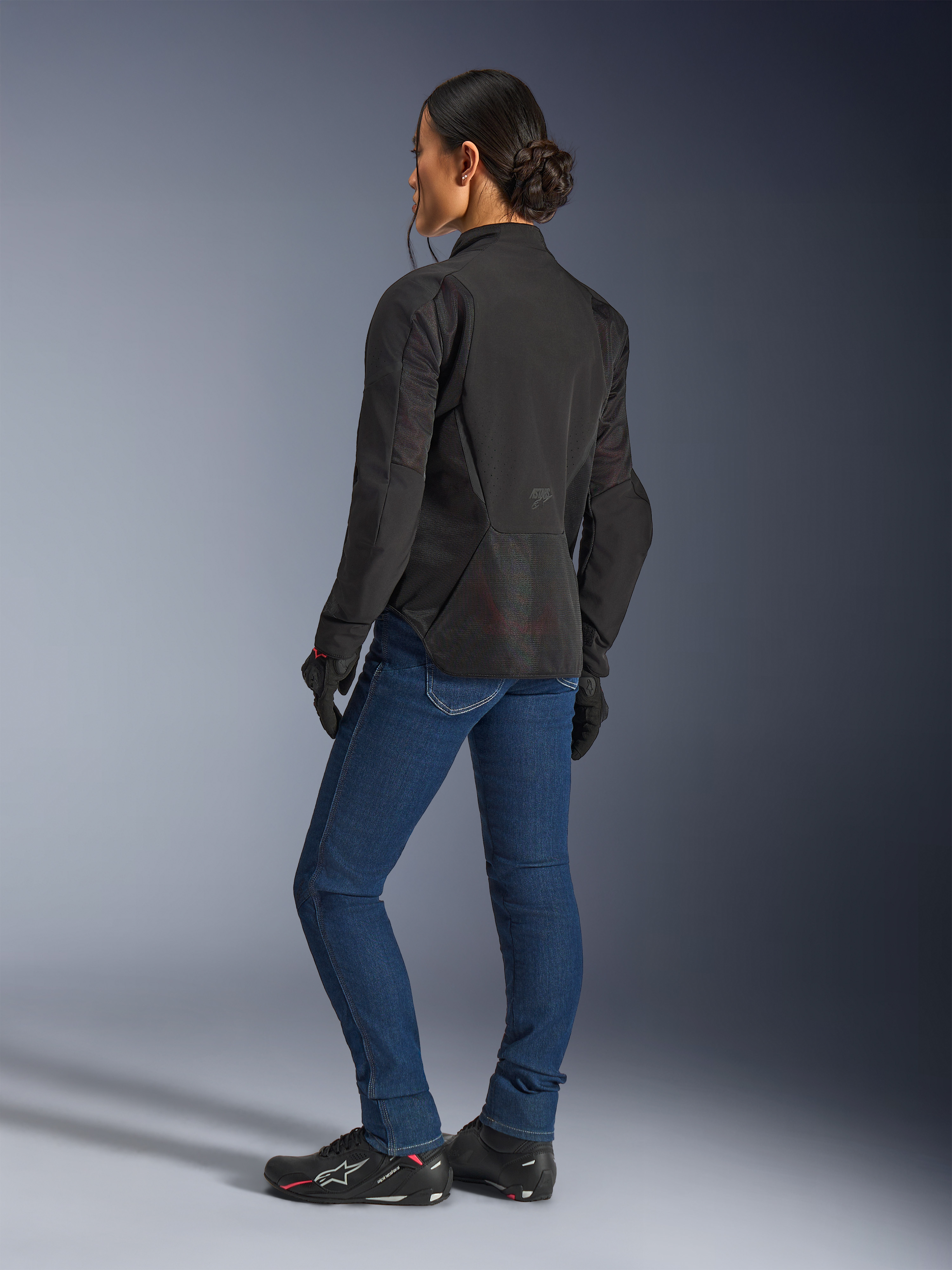 The sporty cut of the Stella Aeroshell Airflow motorcycle jacket with pre-curved arms and extended backside fits naked bikes, touring and sportier vibes. Alpinestars cred means it shines anywhere on two wheels. Snug to nix flapping, roomy for comfort.
