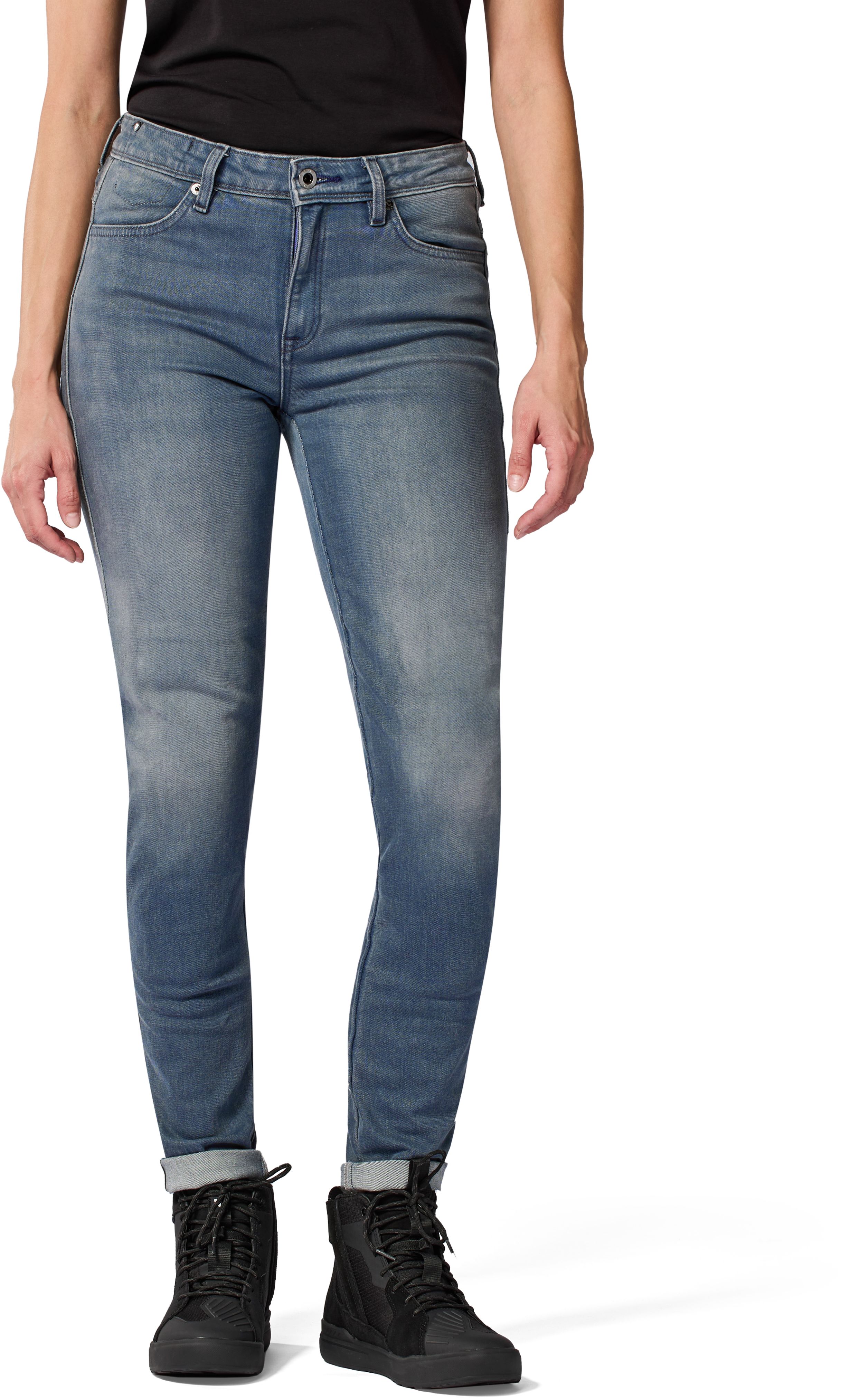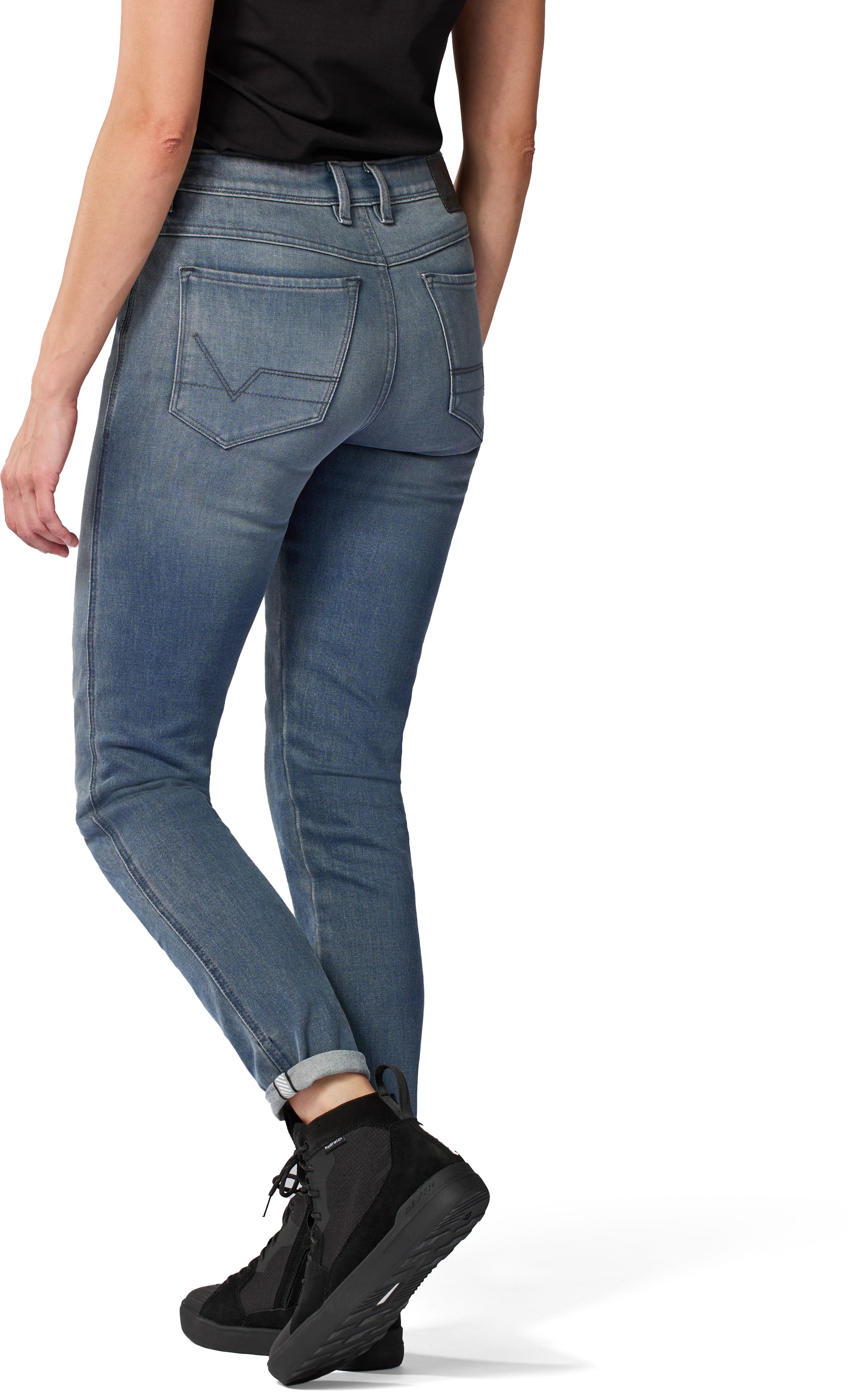 The 'wash' of a pair of jeans is important, and often a personal choice. REV'IT! has opted for a laser-washing process, which not only guarantees excellent visual results but also prevents premature wear of the denim. Denim comes in colors and sizes, and these may vary according to taste. The Marley Lady SK comes in used medium blue denim version.