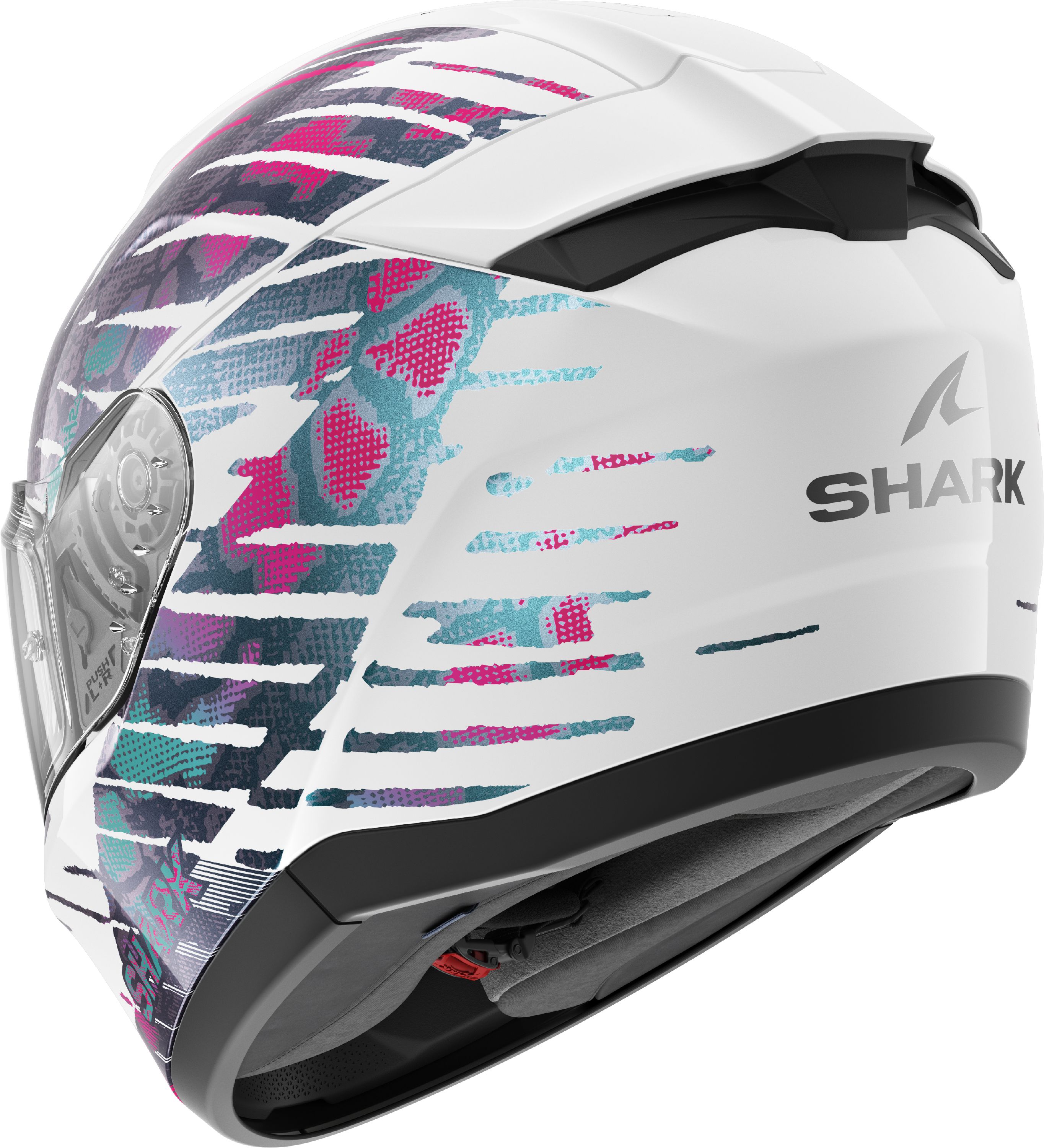 The polycarbonate helmet shell that has been injected with Lexan™ comes in two sizes, that neatly divided among them contain the different helmet sizes. Underneath the solid outer shell, Shark inserts a sturdy EPS padding, delivering numbers that dance around 1500 grams on the scale. Heavy? Well, the new ECE 22.06 certification seems to add a little weight to motorcycle helmets. It doesn’t take anything away from the compact, aerodynamic shape of the Ridill 2, though, that even has an integrated sun visor on board.