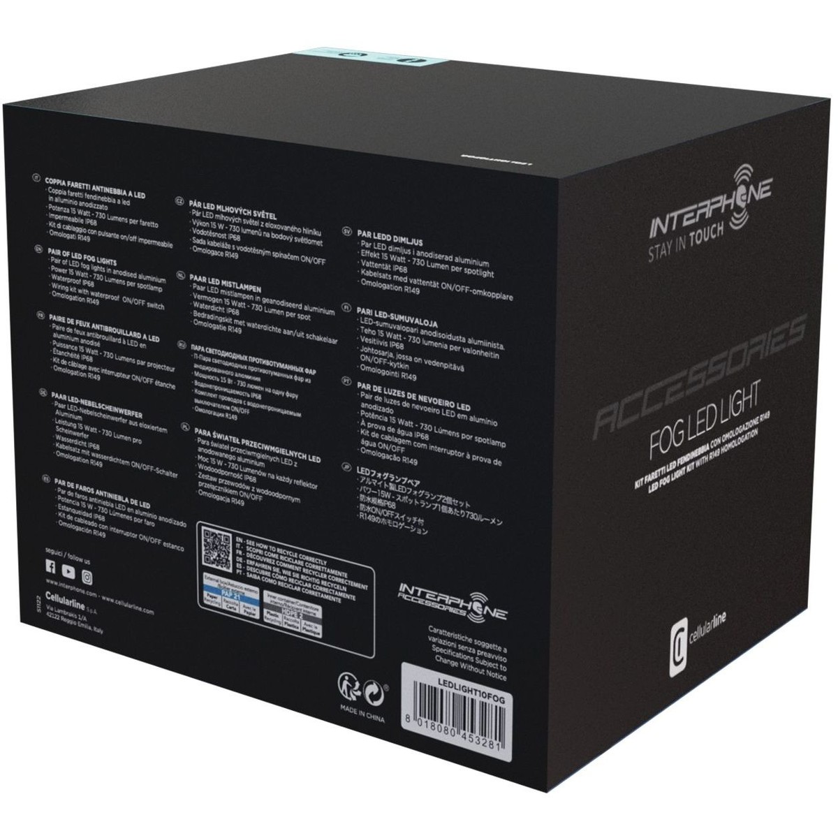 These LED fog lights are the most compact on the market, making installation easy and discreet. They feature IP68 waterproof certification, ensuring resistance to water and dust for lasting performance. The R149-approved LED auxiliary lights kit is legal for road use and offers optimal luminous flux of 990 lumens. The lights operate at temperatures from -40 to +145 °C and are suitable for 9–24 V DC, with a power of 10 W for superior energy efficiency.