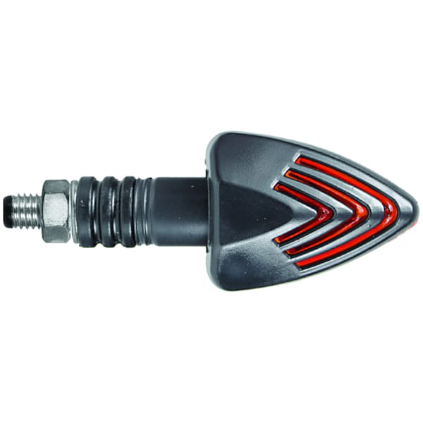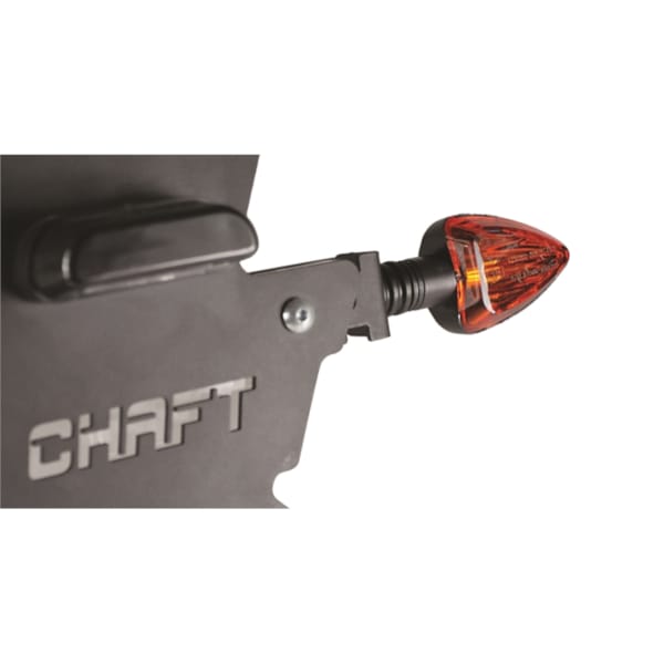 Le CHAFT Gunner à l’allure aérodynamique donnera à votre moto un chouette look tuné. Ce clignotant universel à l’allure agressive est pourvu d’une lampe halogène de 21W et d’un support flexible. La coque noire est fabriquée en matière plastique et prend la forme d’une flèche à l’arrière, la lentille est orange. Ces clignotants homologués CE sont livrés par paire et sont pourvus d’un câble et d’un écrou.