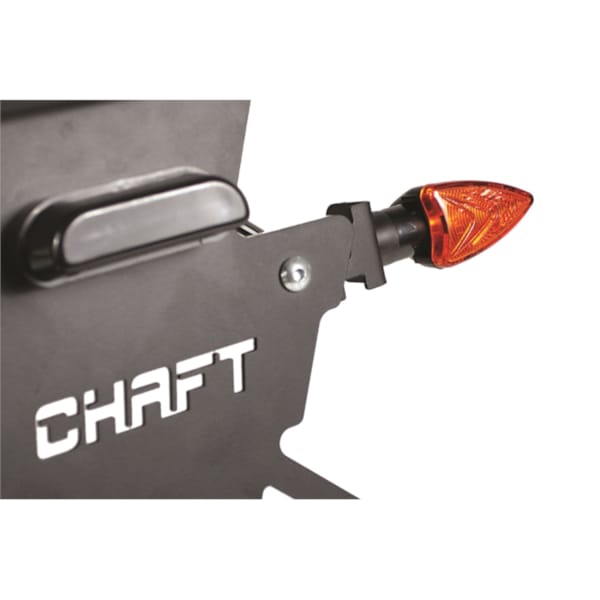 Le CHAFT Tyson compact donnera à votre moto un look tuné mais sans fioritures. Ce clignotant universel au look agressif est pourvu d’une lampe halogène de 21W et d’un support flexible. La coque noire est fabriquée en matière plastique, la lentille est orange. Ces clignotants homologués CE sont livrés par paire et sont pourvus d’un câble et d’un écrou.