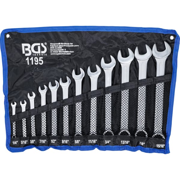 Avec anneaux et clés plates de 1/4", 5/16”, 3/8”, 7/16”, 1/2", 9/16”, 5/8”, 11/16”, 3/4", 13/16”, 7/8” en 15/16” mm, vous avez déjà de quoi faire – ou défaire. Le set complet est livré dans un rouleau tetron, ce qui rend le rangement (et éventuellement le transport) bien pratique.
