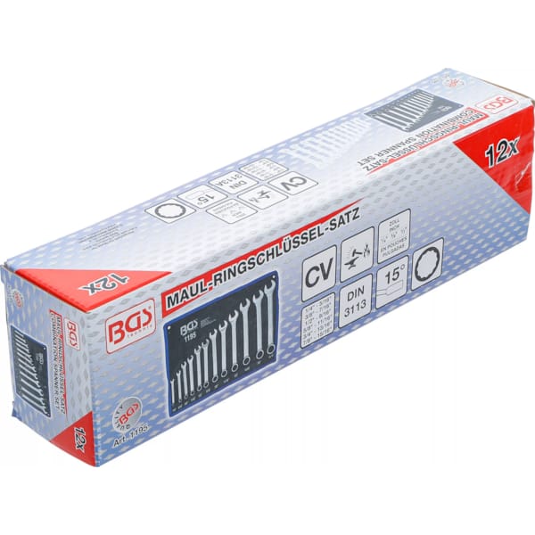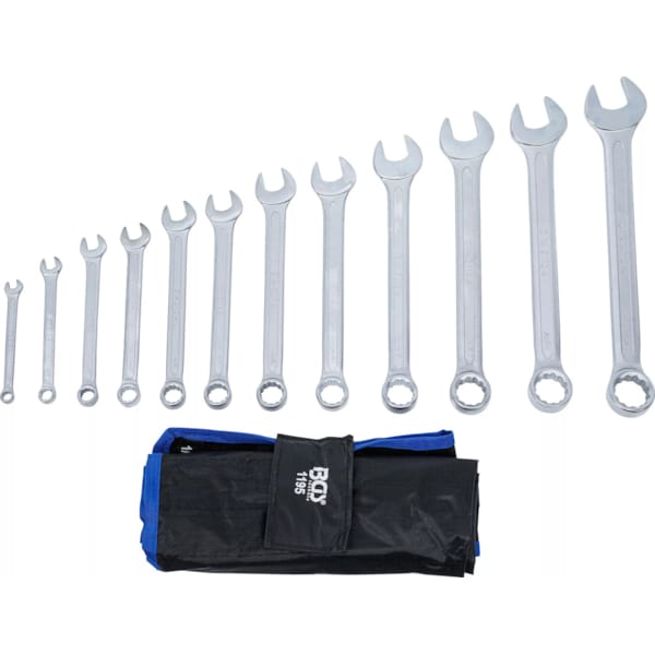 Ce jeu de clés – combinaison d’anneaux et de clés plates – contient les clés les plus courantes, c’est-à-dire douze mesures différentes. Toutes ces clés sont en métal vanadium chromé, ce qui garantit leur durabilité, même en cas d’usage intensif.