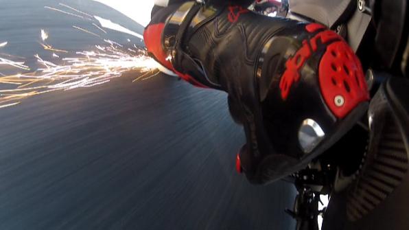Le summum des sports moteur, c’est -surtout au niveau de la vitesse- cette agréable et extraordinaire sensation des sliders de genoux qui laissent une belle trace sur les ‘curbstones’ quand vous arborez une courbe parfaite. De plus, si vous faites des étincelles, c’est encore mieux !