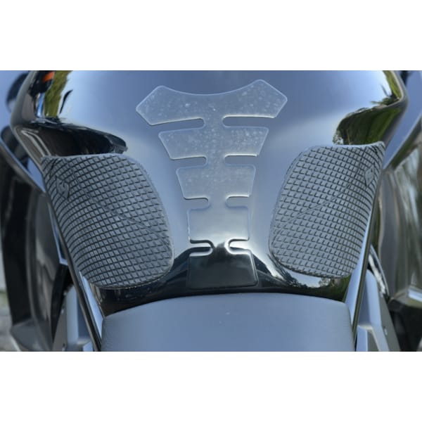 Ces Tank Clamps se prêtent parfaitement aux usages combinés avec du textile. Vous remarquerez qu’une surface moins glissante du réservoir a un impact direct sur le contrôle de votre moto. Si vous recherchez une adhérence plus spécifique – à des fins sportives –, nous vous recommandons plutôt ces Tank Grips.