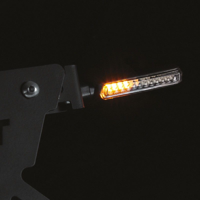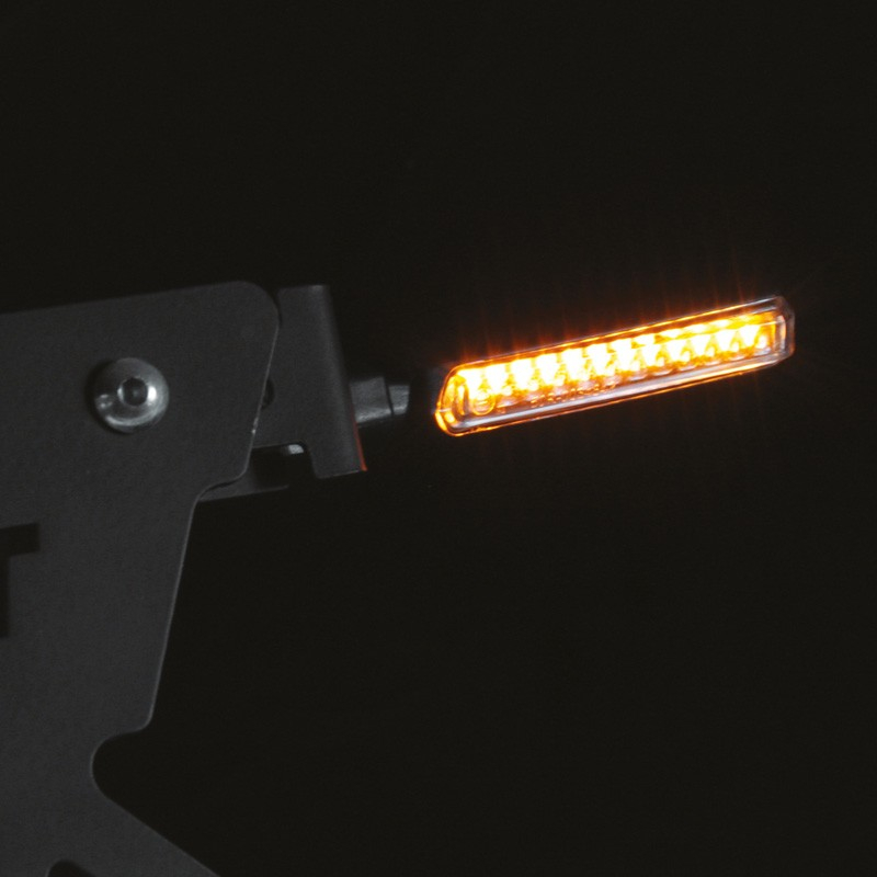 Les 2.0 Hammer de CHAFT sont des clignotants de la nouvelle génération. Les lampes Led orange s’allument de manière séquentielle, l’une après l’autre, pour vous rendre encore plus visible dans la circulation. Ils ont surtout un design basique et rectiligne. Epurés et littéralement ‘en ligne’, pour ajouter une certaine mesure d’agressivité à l’allure de votre moto. Une tige non flexible, une base et un boîtier en plastique noir ainsi qu’une lentille fumée, leur design minimaliste attire le regard. Ces clignotants homologués CE sont livrés par paire et fournis avec câble et écrou.