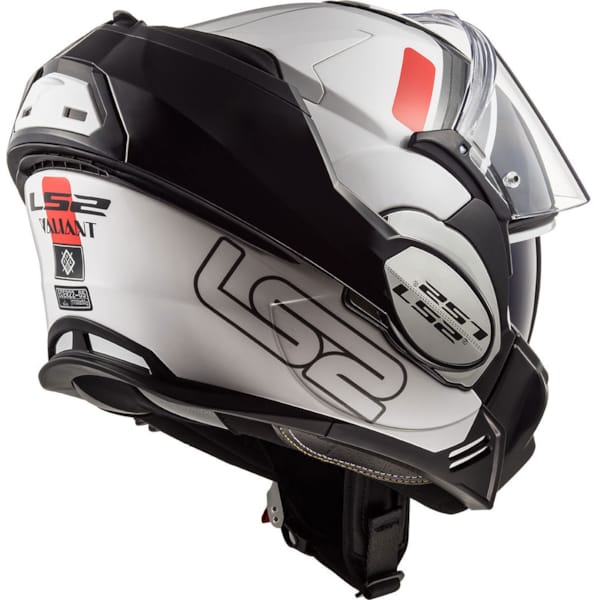 La coque est fabriquée en KPA qui est une combinaison de trois matériaux composites (carbone, polycarbonate et ABS). Cette composition bien spécifique et le jeu de rapports adaptés en fait un matériau de haute qualité pour un volume réduit. Ce qui fait du Valiant un casque plus petit (et plus léger!) que ses concurrents. Les tailles de casques sont réparties en deux coques pour souligner encore pus l’aspect ‘léger et compact’. La balance indique 1700 grammes mais la sensation se rapproche plutôt des 1400 grammes. La raison en est que le casque se positionne de manière différente sur la tête: il descend plus bas, ce qui engendre une meilleure répartition du poids, celui-ci étant supporté par les épaules et non par le cou. Généralement, les casques LS2 sont de forme ovale il en va de même pour ce Valiant.