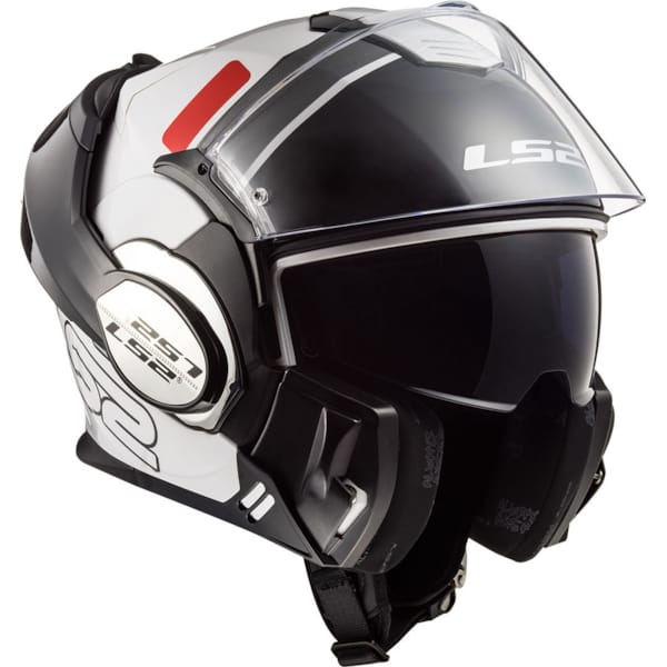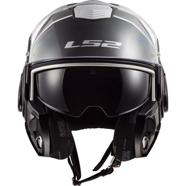 Les LS2 sont dotés d’origine d’une visière de polycarbonate ‘3D Optically Correct "A Class". Résistante aux impacts sans concessions envers la clarté ni l’acuité. Anti rayures, résistante aux UV et évitant la formation de buée, grâce au Pinlock 70 fourni d’origine. La visière solaire intégrée se manipule sans problème même avec des gants grâce au système de glissière situé à gauche sur la partie inférieure du casque. Un petit écran teinté protège les yeux, et les yeux seulement. Celui-ci fonctionne avec ou sans visière. Remplacer ou ôter la visière se fait rapidement.