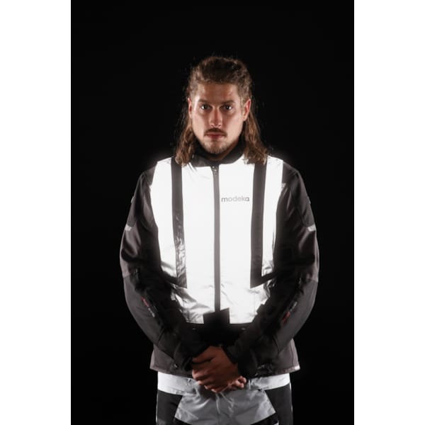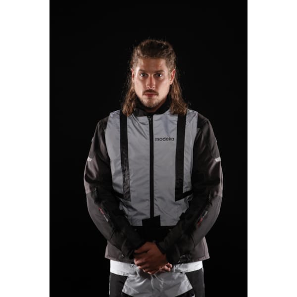 C’est pourquoi Modeka voit les choses sous un autre aspect avec la Doc Silver : tout est réfléchissant. En même temps, vous restez plus discret le jour. Donc, si le fait d’enfiler une veste jaune fluo extrêmement visible vous retient, ici, vous n’aurez plus d’excuse.