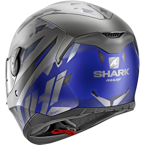 Les ventilations au niveau du front et du menton sont faciles à manier, même avec des gants. L’air qui rentre par la ventilation au niveau du front est répandu via les canaux intégrés dans la coque intérieure. L’intérieur confortable est entièrement amovible et lavable. Le casque se ferme avec une boucle micrométrique qu’on peut ajuster d’une manière précise. Un déflecteur d’air empêche que la visière ne soit couverte de buée et pour éviter du vent et des bruits dans le casque, Shark a prévu une bavette anti-remous. Le D-Skwal est également pourvu d’échancrures pour y mettre des haut-parleurs intercom. Dans la boîte vous trouverez des autocollants réfléchissants pour coller sur le casque (attention; ceci est obligatoire pour la France).