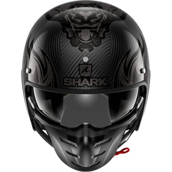 Le S-Drak est développé en diverses finitions mais le look carbone noir en est l’essence même. Le S-Drak ne dispose pas d’origine d’un pare-soleil amovible comme le X-Drak, mais celle-ci est compatible avec les deux modèles de casque. Elle peut bien entendu être commandée séparément.