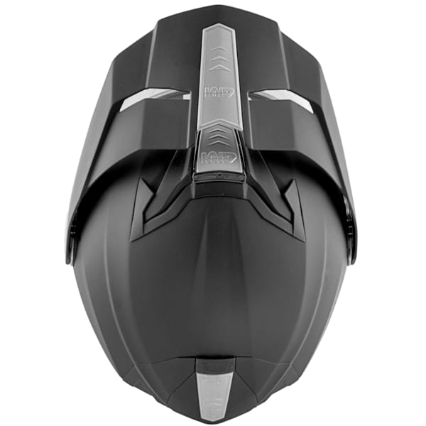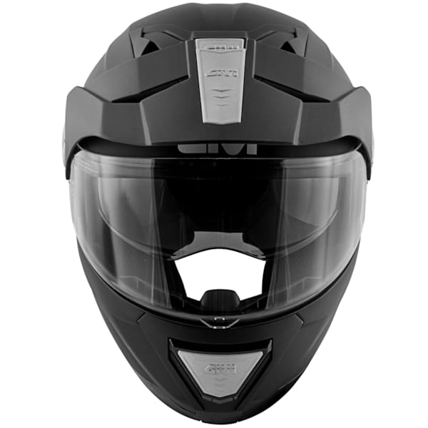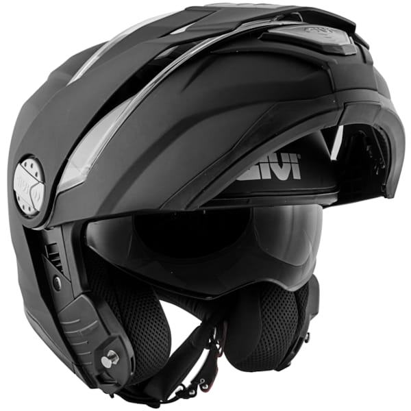 La coque externe est faite de thermoplastique et convient pour toutes les tailles de casques. Son poids total n’excède pas -plus ou moins- 1700 grammes et reste dans les limites acceptables. Sans doute parce qu’une vingtaine de composants ‘pour gagner du poids’ s’y trouvent intégrés. A commencer par les ventilations au niveau du menton et de la partie supérieure, chacune pourvue d’une solide glissière pour l’ouvrir et le refermer. Dans la même idée, GIVI en a placé une à l’arrière ainsi que deux évacuations. Une attention toute particulière a été portée à la circulation d’air dans le casque mais aussi à l’extérieur du casque, avec ses prises d’air aérodynamiques.