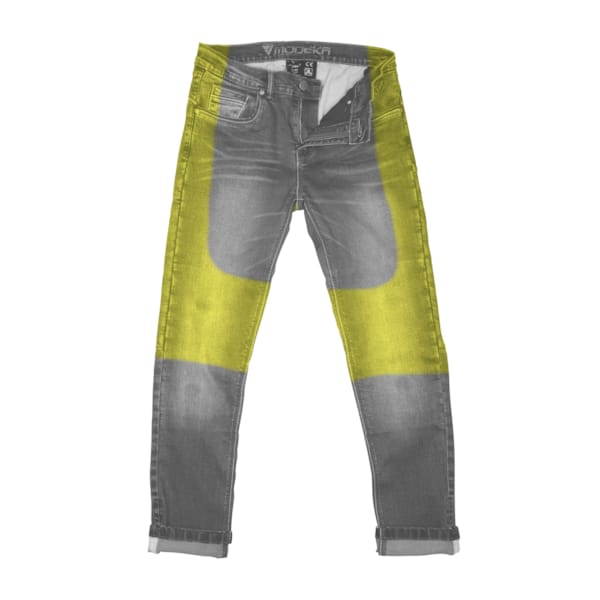 Ce pantalon de moto est disponible en longueur ‘normale’ ou ‘longue’ (34 pouces). Pour avoir la garantie d’un pantalon qui répond aux exigences de sécurité quand vous décidez d’enfourcher une moto. Le Glenn Slim Stone Wash de Modeka est fait de denim stretch de bonne qualité (‘slim’ sous-entend : ajusté), il est équipé de Kevlar® DuPont™ là où il se doit : hanches, genoux et séant. Les protections SAS-TEC au niveau des genoux se retirent facilement mais sont aussi très minimalistes (lisez : fines). Vous avez la possibilité d’y insérer, facilement et rapidement et en option, une protection de hanches (SAS-TEC).