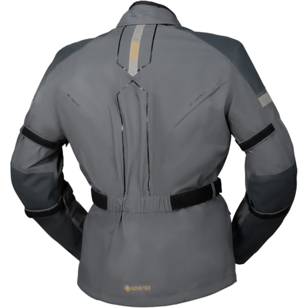 La coupe de la Master est de type tourisme, avec des poches typiques à l’avant, dans une veste qui dépasse de loin la moyenne. On apprécie les sangles avec Velcro permettant de la cintrer et de lui donner la forme idéale. Sans doute aussi grâce à celles se trouvant sur les manches (trois !) et au niveau de la taille (cordon).