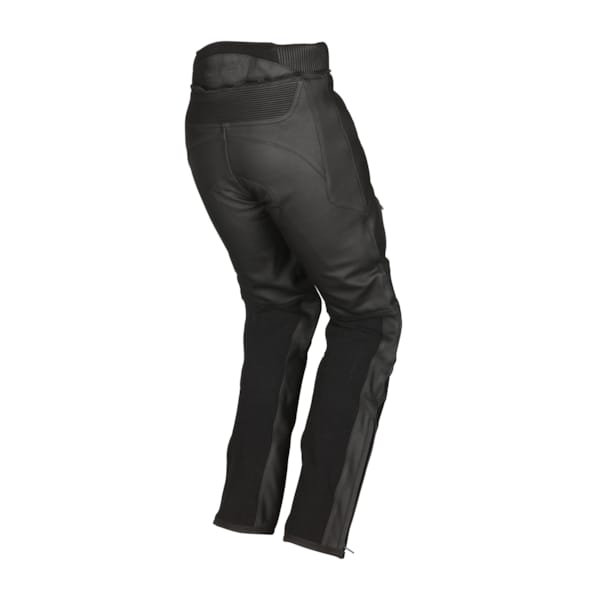 Le bas du dos -légèrement plus haut- est pourvu de matière accordéon, suffisamment pour en faire un pantalon agréable et confortable et, c’est pour cette même raison que les genoux sont garnis du même motif. Les panneaux de stretch au niveau du mollet et sur les cuisses en améliorent encore le confort et la flexibilité. Un pantalon de cuir comme celui-ci se doit d’être ajusté au corps.