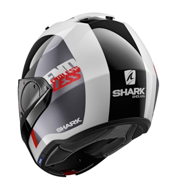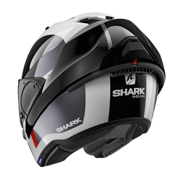 Compact, léger et extrêmement polyvalent, ce casque bénéficie d’une double homologation, en tant que casque intégral mais aussi comme casque Jet, atout non négligeable. Les casques Evo ont déjà fait leurs maladies de jeunesse. L’Evo ES de Shark pèse 1650 grammes ; il est fait, comme ses frères, de thermoplastique induit par injection. Les tailles de casque se répartissent en deux coques de casque pour conserver compacité et légèreté.