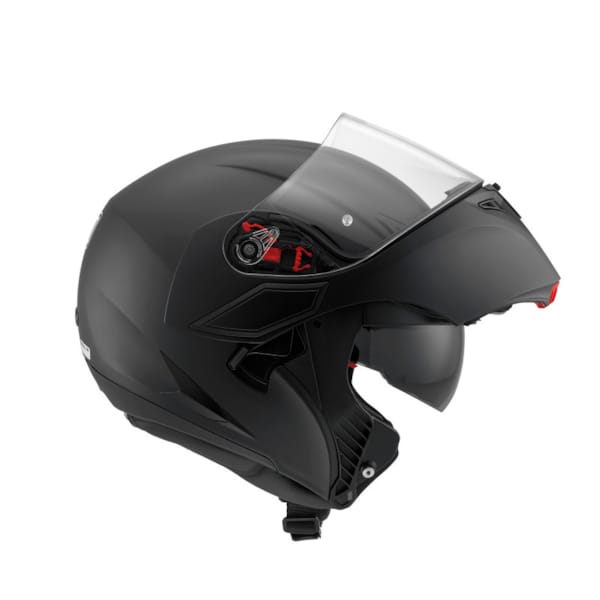 La visière a, elle aussi, fait l’objet d’une attention toute particulière. Anti-rayures, Extra Quick Release System breveté. La lentille Pinlock® est comprise. AGV s’est focalisé sur une ‘ultra-vision’ dans chacun de ses casques : 190° à l’horizontale et 85° à la verticale. Selon les Italiens, ces coordonnées seraient celles qui conviennent le mieux à votre champ de vision. Parfait pour une large vision sur la route, les virages et les obstacles éventuels. L’expérience nous a appris que la vitesse de diffusion des informations et une bonne technique de visualisation dans les milieux moins professionnels font toute la différence, même si tout danger est écarté.