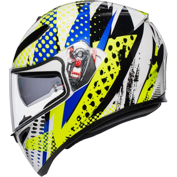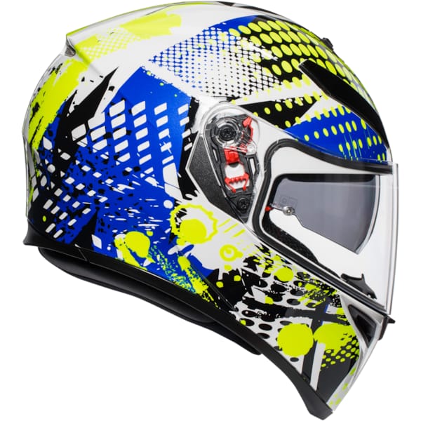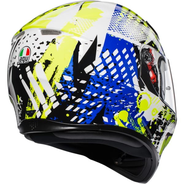 Le K3 SV est un casque intégral polyvalent, au prix abordable, qui possède, d’origine, bien des atouts supplémentaires. Fait appréciable. Dans la gamme K3 SV d’AGV, c’est principalement le graphisme aux allures de bandes dessinées qui attire le regard.