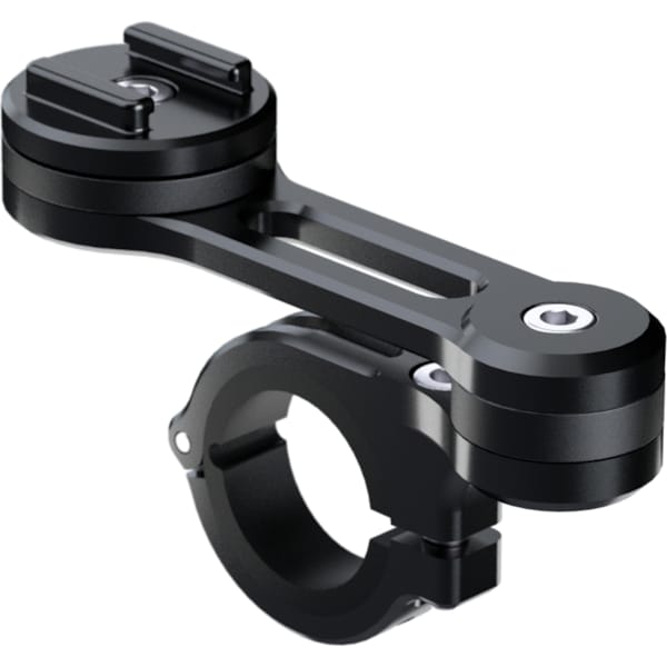Ce SP Connect Moto Mount Pro est en quelque sorte l’incarnation fraisée CNC de la fixation idéale, sûre et pratique. L’aluminium utilisé l’est généralement dans le domaine de l’aviation tandis que le bras en acier inoxydable autorise un positionnement multiple du smartphone. Retirez le bras et vous pouvez utiliser le SP Connect Moto Mount Pro comme pince. Les deux versions proposent une rotation à 360° afin de trouver la position idéale de votre téléphone.