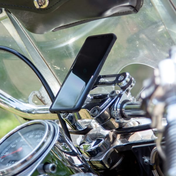 Ce SP Connect Moto Mount Pro est en quelque sorte l’incarnation fraisée CNC de la fixation idéale, sûre et pratique. L’aluminium utilisé l’est généralement dans le domaine de l’aviation tandis que le bras en acier inoxydable autorise un positionnement multiple du smartphone. Retirez le bras et vous pouvez utiliser le SP Connect Moto Mount Pro comme pince. Les deux versions proposent une rotation à 360° afin de trouver la position idéale de votre téléphone.