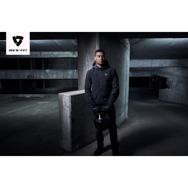 La Afterburn H2O n’est pas, à proprement parler, une veste ‘typique’, ni en matière de sensations ni de visu. Le Softshell, le capuchon, la font plutôt ressembler à une veste que l’on enfile quand on descend de moto. Et pourtant, celle-ci est une véritable veste de moto. Très solide de surcroît, dans tous les sens du terme. Une veste à haute densité de softshell. Le softshell est polyvalent, il vous garde au sec à l’intérieur et offre le plus grand confort par tous les temps. La particule ‘high density’ laisse à penser qu’elle est faite pour la moto et ce qui manque au softshell, REV’IT ! l’ajoute.
