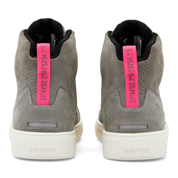Mais cette sneaker-aux-propriétés-de-moto a bien d’autres ambitions et met l’accent sur la ventilation et les sensations. Elle partage la coupe de cheville, qui forme, avec la protection d’orteils et de talon (thermoformés), l’épine dorsale de l’Arrow Lady, avec leurs frères étanches Delta H2O. Tout comme la semelle anatomique, appelée ‘Ortholite’ depuis 2020, présente dans toute chaussure de REV’IT !, est un élément récurrent. Notez la subtile bande réfléchissante à l’arrière, au niveau du talon. Le souci du détail n’y est, chez les Néerlandais de REV’IT !, sans doute pas étranger.