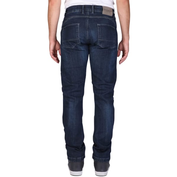En fait, vous portez un pantalon Coolmax® dont l’une des faces est recouverte de Kevlar et dont l’autre ressemble parfaitement à un jeans. La matière jeans extérieure se compose de 2% d’élasthanne, juste ce qu’il faut pour lui donner un brin d’élasticité. Idéal pour enfourcher une moto ou pour adopter tout ce qui ressemble à une position assise.