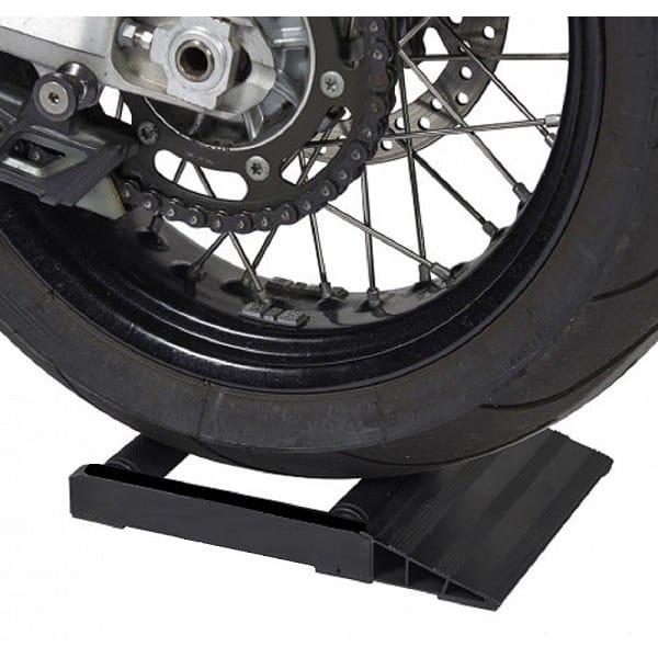 Le support rotatif de roue arrière – qui peut également servir pour la roue avant – a pour rôle majeur de vous assister lorsque vous procédez à l’entretien de la chaîne. Ce support en aluminium pèse environ 2 kilogrammes et permet de faire tourner la roue arrière sans devoir courir tout autour de la moto ou faire appel à la béquille centrale. Pour atteindre facilement chaque maillon de la chaîne.