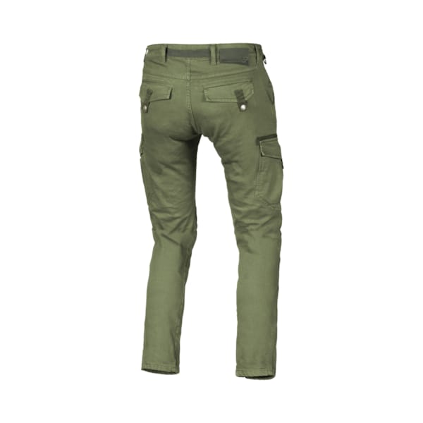 Invisible mais essentiel dans tout pantalon de moto d’été, cargo ou non : l’Aramide, un matériau résistant à l’usure et aux déchirures, renforcé au niveau des genoux, des hanches et du séant. Autrement dit, là où l’on glisse. Il est entrelacé avec un textile ordinaire (coton) doté d’une légère dose de stretch. Être debout et s’asseoir sont deux choses bien différentes et un peu de jeu pour passer de l’un à l’autre est toujours bienvenu.