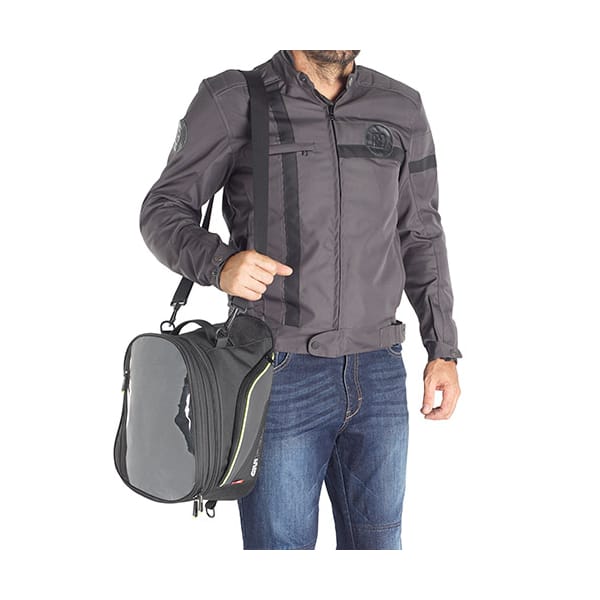 L’Enduro Easy-T de GIVI est faite de polyester 600D robuste et dispose de renforts en PVC amovibles. La présence d’une poignée permet d’emporter la sacoche aisément lors de vos étapes. Une bandoulière fournie d’origine permet de transformer la sacoche, en un clin d’œil, en sac d’épaule.