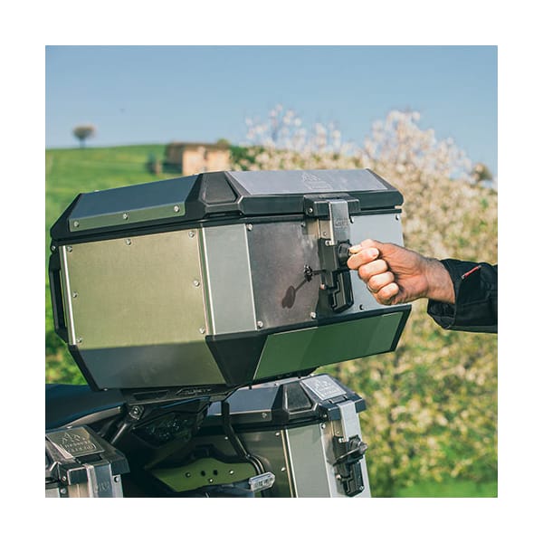 Chaque top case Alaska est fabriqué en Italie et se compose d’aluminium de haute qualité. Et pas grand-chose de plus : la devise est ‘la fonction prime sur l’esthétique’. Pas de fioritures, seulement l’essentiel dans un emballage robuste. Il y a pourtant certaines choses notables.