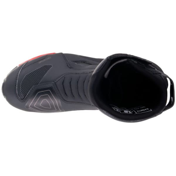La RT-7 Drystar est dotée d’une semelle et d’une construction qui devraient offrir un confort de marche impressionnant. Vous avez parfois l’impression de porter des chaussures très lourdes si vous marchez, tout comme une veste moto sur le portemanteau semble remarquablement alourdi alors que c’est bien ça qui la rend confortable sur l’autoroute. Dans le cas présent, Alpinestars a fourni un solide effort pour trouver un équilibre. Et l’a trouvé. C’est principalement grâce au « Transversal Protection Frame » (TPF) intégré d’Alpinestars. Cela protège votre pied sans entraver le mouvement.