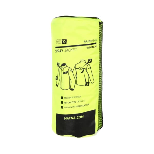 La MACNA Spray Jacket Lady n’est pas une veste moto. Il n’y a pas de protection aux impacts, par exemple. Vous le portez toujours en combinaison avec des vêtements moto complets. Et parfois aussi avec le MACNA Spray Pants Lady, pour profiter d’une protection contre la pluie complète.