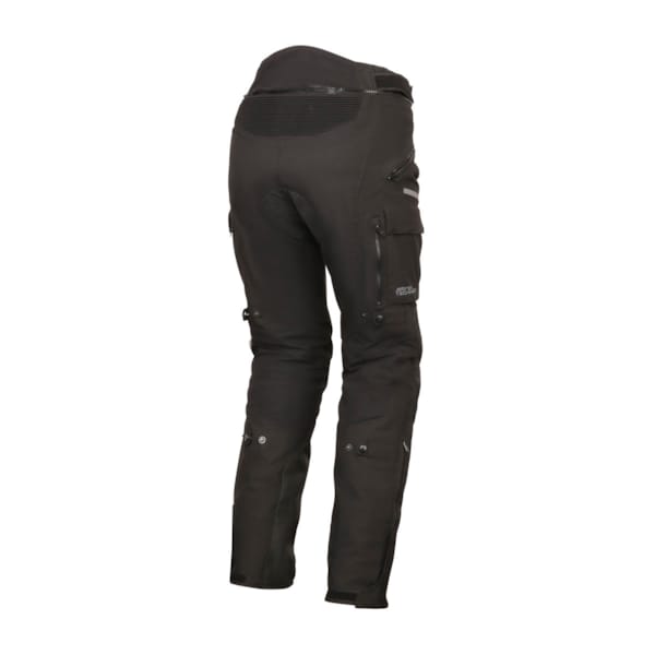 Avec les protections YF® (réglables en hauteur) sur les genoux, la protection aux impacts est presque toujours adéquate. Niveau 1, homologation CE, et complété en option par SAS-TEC® SC-1/07 ou SC-1/KA, vous avez le choix. Avec le Trohn, Modeka étend cette idée à la triple rangée de boutons-pression sur le mollet, et aux sangles réglables (de velcro) à la taille. Au-dessus du genou aussi, vous pouvez choisir entre trois boutons-pression (à l’arrière). De nombreux éléments flexibles, du stretch, et un tableau de tailles très étendu font le reste.