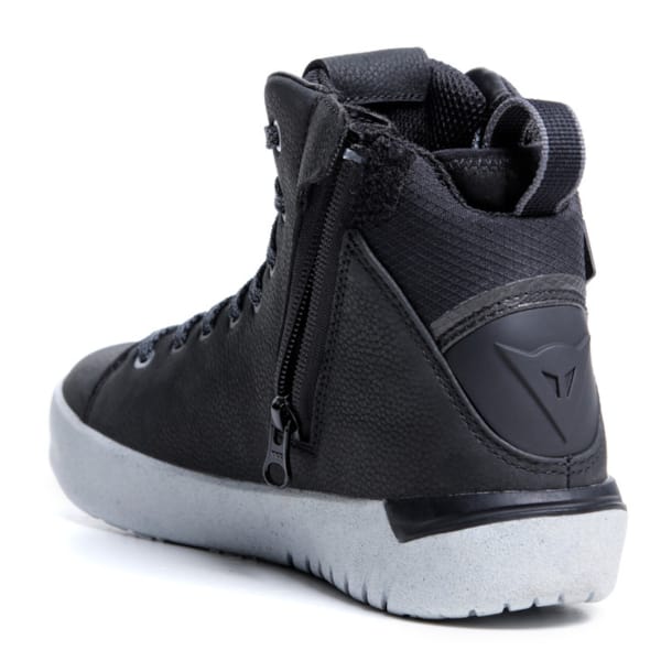 Le cuir pleine fleur à l’extérieur est résistant, et suffisamment solide pour inspirer confiance lorsque vous posez les pieds au sol à un feu rouge. Si vous avez mis le pied dans une flaque, l’intérieur intégré D-WP assure l’étanchéité. Évidemment, les chaussures imperméables à lacets et mi-hautes ne savent pas faire des merveilles.