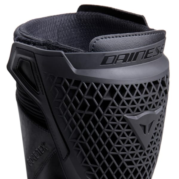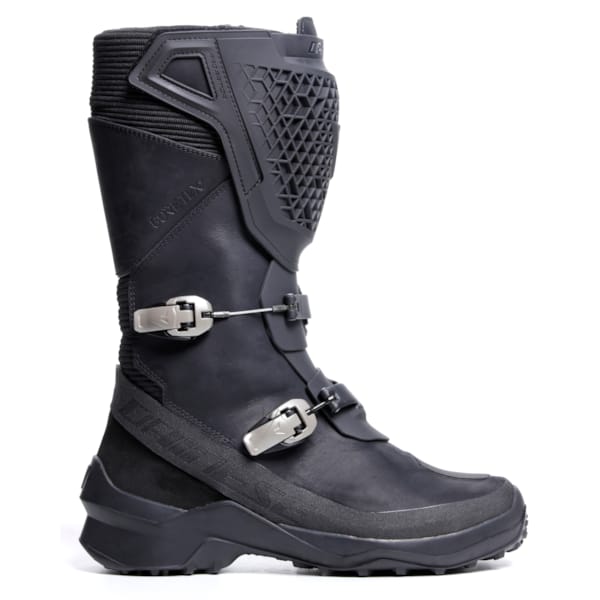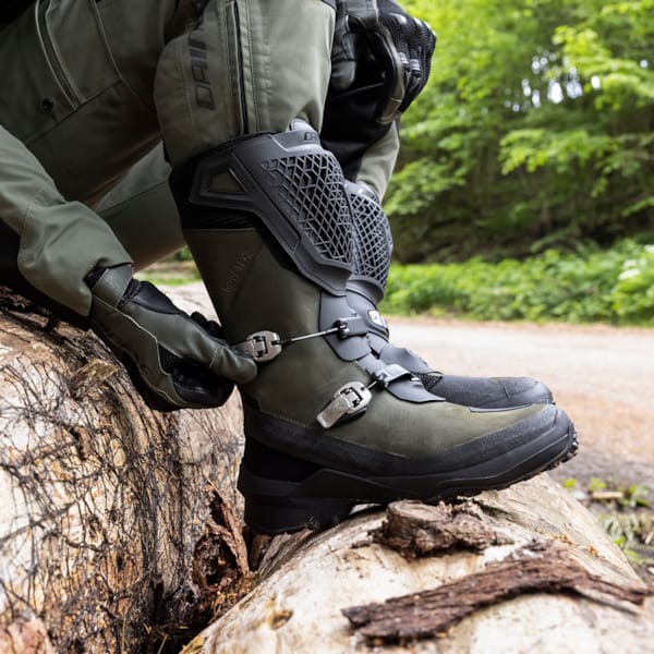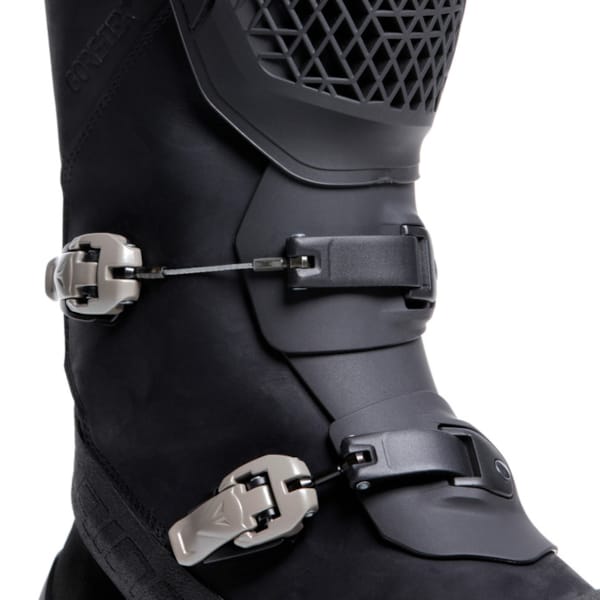 Les protège-tibias Pro Armor de DAINESE, et les empiècements rigides sur et autour des chevilles, créent un cocon dans lequel vos orteils, vos pieds, vos chevilles, et une partie de votre jambe restent confortables. Le dos de la Seeker Gore-Tex® est presque entièrement constitué de matière accordéon fine. Ce système, associé aux deux boucles métalliques distinctives du 'QuickLacing System', offre une grande flexibilité et de nombreuses options de réglage.